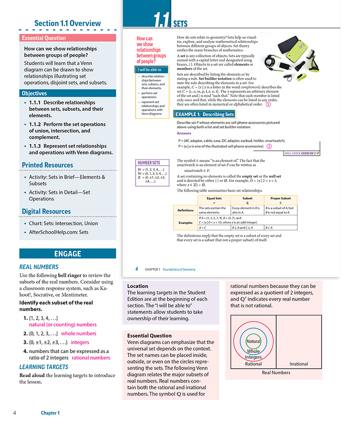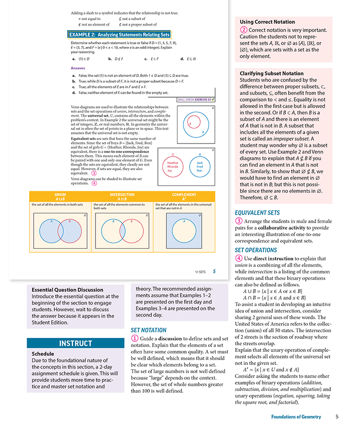 The Teacher Guide uses step-by-step examples, lesson plan overviews, a list of digital and printed resources, and suggested teaching strategies help teachers teach clearly and accurately. This edition adds the teaching cycle (engage, instruct, apply, assess) alongside teaching strategies that focus on varied instructional techniques to reach all learning styles. Suggested assignments based on student ability levels allow for differentiated instruction.