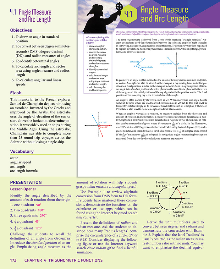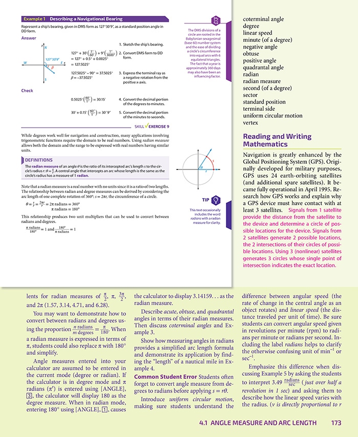 Lessons in Precalculus thoroughly develop key concepts, provide detailed examples to promote student comprehension, and integrate practical applications. Exercise sets include three levels of difficulty to allow differentiated assignments. Each section includes cumulative review to help with long-term mastery and to prepare students for standardized tests. Students will have the opportunity to use technology to explore mathematical concepts.