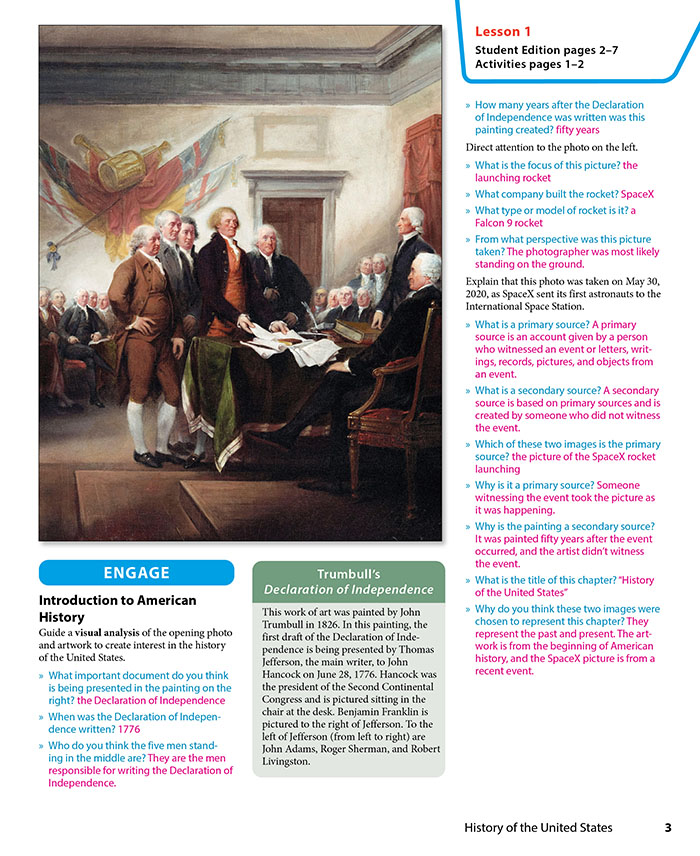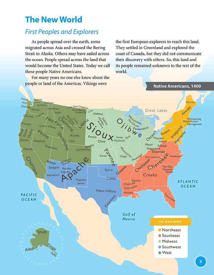 The content is organized according to the major regions and sub-regions of the United States and includes all fifty states along with the five inhabited United States territories. Each chapter in the student edition provides an overview of a specific region followed by discussions of each state in that region and includes numerous illustrations including maps, artwork, infographics, and more. Full-page illustrations also invite your child to experience unique aspects of culture in a state or territory.