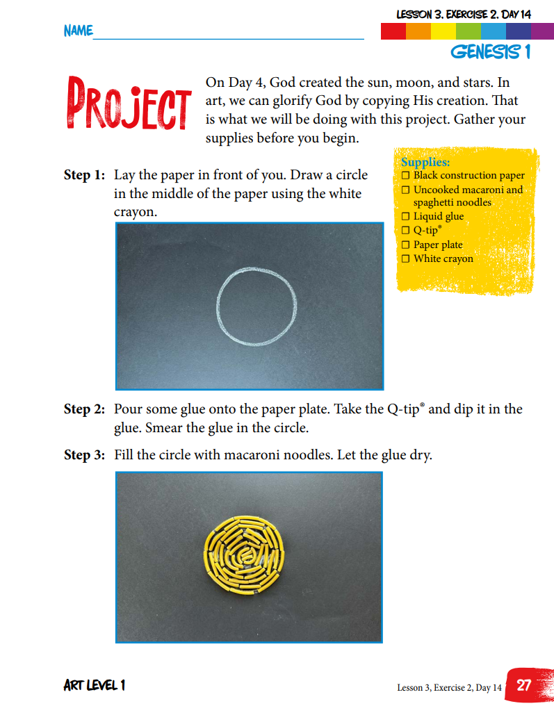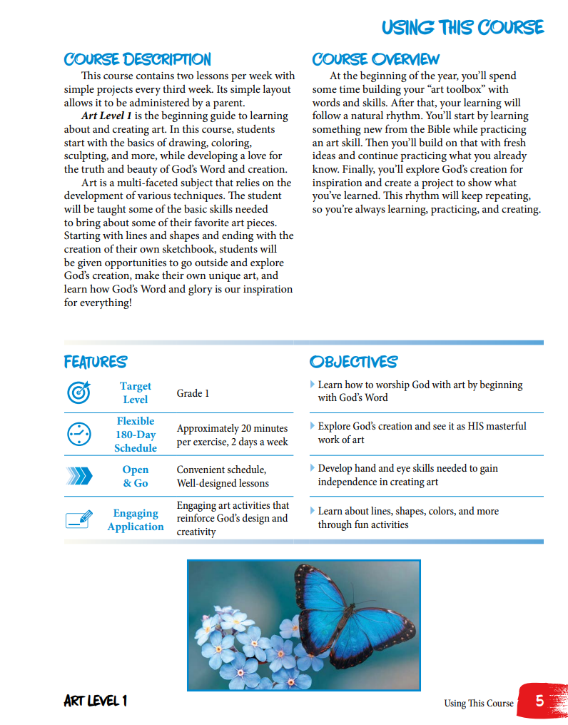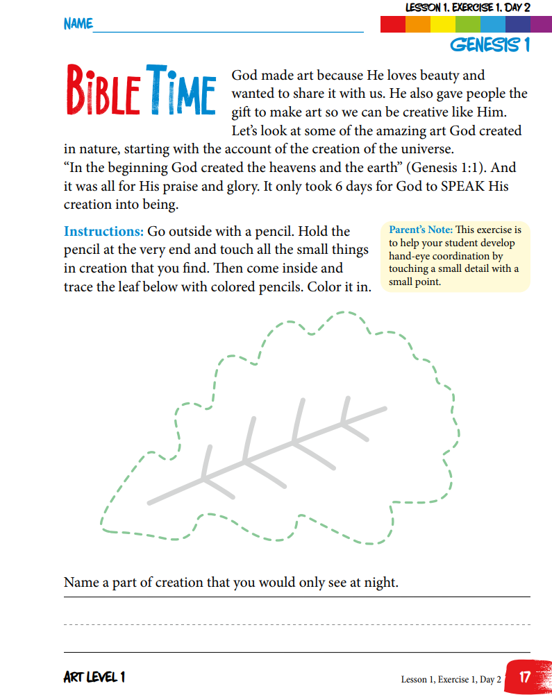 Transform art time into a joyful, hands-on adventure with Art Level 1, a Scripture-based art curriculum designed especially for first-grade students.