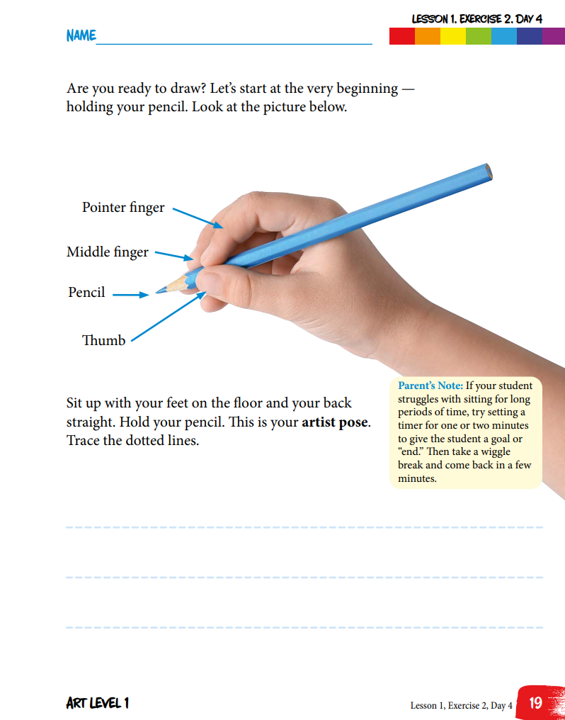Give your student the freedom to create, explore, and have fun with art! Art Level 1 is packed with short, open-and-go lessons and hands-on projects designed for curious young learners.