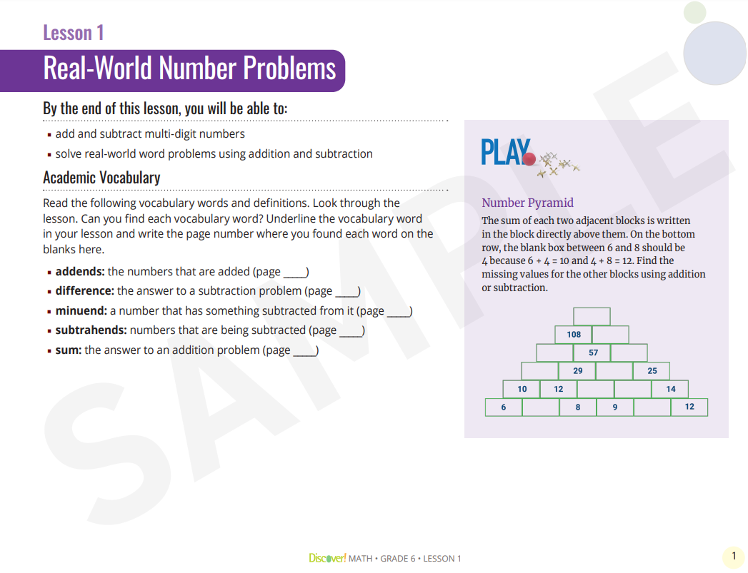 Discover! Math Grade 6 Complete Curriculum Bundle