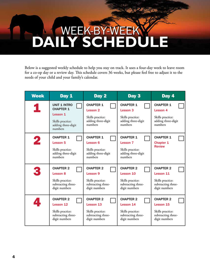 • A suggested daily schedule with thoughtful, systematic pacing through concepts
