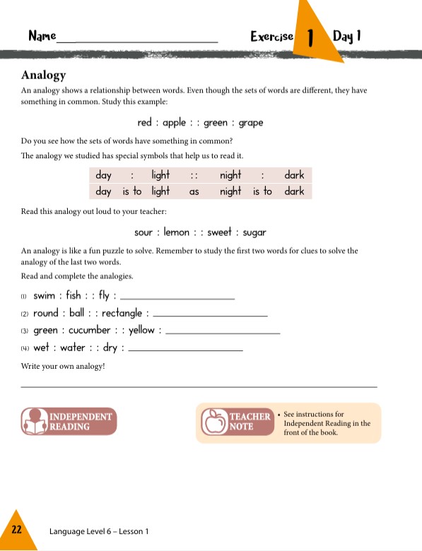 By mastering grammar, the eight parts of speech, tricky words, reading comprehension, an expanding vocabulary, and much more, your six-grade level student will be able to move beyond basic paragraphs to more refined, structured, and skillful use of ideas and concepts. They will also learn unique and unusual aspects of writing and language arts rules. Through this combination of the basics and beyond, the student will become adept at more effective and descriptive written communication.